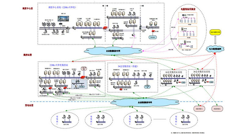 新工业园电气监控系统包括1个调度主站、5个集控站、13个子站、60个子子站、视频监控、五防、卫星对时、电能计量、通信、园区综合能源管理等子系统以及高低压综保、测控终端等自动化站端设备集成。