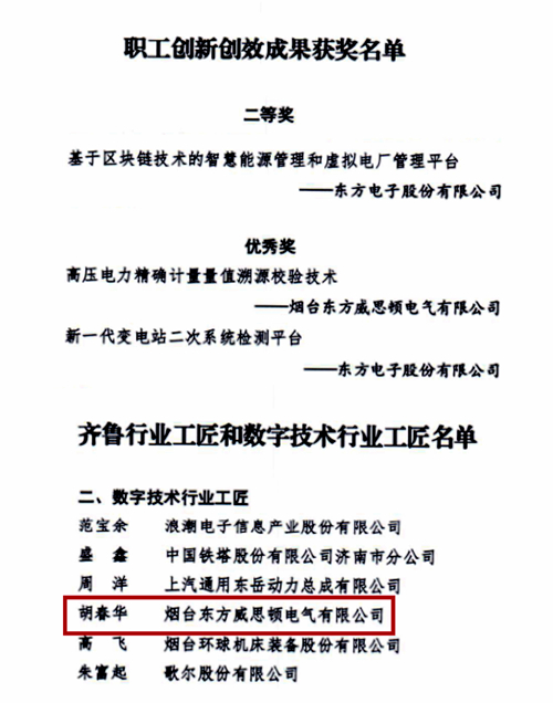 LEDONG.COM_乐动ledong(中国) (以下简称“股份公司”)荣获“全员创新企业”称号。子公司烟台东方威思顿电气有限公司(以下简称“威思顿”)胡春华荣获“数字技术行业工匠”称号。